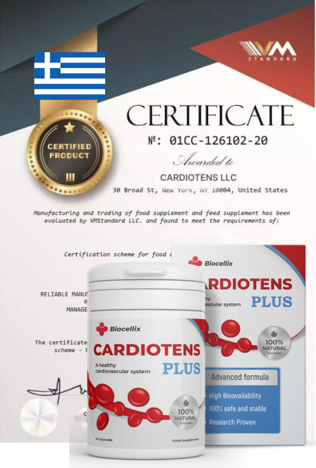 Μέχρι σήμερα, υπάρχει μόνο ένα προϊόν για τον καθαρισμό των αιμοφόρων αγγείων. Ονομάζεται Cardiotens Plus. Η φόρμουλα που χρησιμοποιείται σε αυτό δημιουργήθηκε από το Ινστιτούτο Καρδιάς και Αγγείων το 2023. Το Cardiotens Plus περιέχει: Εκχύλισμα φύλλων ελιάς: Πρόκειται για ένα εξαιρετικό συμπλήρωμα που χρησιμοποιείται για τη θεραπεία της υπέρτασης και της υψηλής χοληστερόλης. Τα εκχυλίσματα φύλλων και ανθών από ιπποφαές κάνουν τα εξής: μειώνουν την αρτηριακή πίεση, βελτιώνουν την ανοσία και απομακρύνουν την κακή χοληστερόλη από τον οργανισμό. Τα εκχυλίσματα ραπανιού, μήλου, μαύρης σταφίδας, γλυκοπατάτας και κερασιού: είναι πηγές βιοφλαβονοειδών και ισχυρών αντιοξειδωτικών που προστατεύουν τα αιμοφόρα αγγεία από φλεγμονές και βλάβες- μειώνουν τη χοληστερόλη, βελτιώνουν την καρδιαγγειακή υγεία και μειώνουν τον κίνδυνο καρδιαγγειακών παθήσεων. Σκόρδο: βελτιώνει τη χωρητικότητα των αιμοφόρων αγγείων, μειώνει την αρτηριακή πίεση και βελτιώνει τη ροή του αίματος προς την καρδιά.